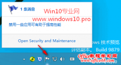 细心的用户会发现Win10预览版的一个细节变化,以Win10 9879为例,控制面板中系统和安全分类下的操作中心已经更名为安全和维护。而这个操作中心在Win7和Win8时代是最为大家熟知的,也就是屏幕右下角系统托盘中的小白旗图标。现在你再点击Win10 9879预览版系统托盘中的这个小白旗图标,在弹出的消息窗口中就会看到Open Secur...