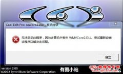 今天在看网上视频资料时想录制其中的一段背景音乐,下载后发现是swf文件,知道不好抽离音乐,于是就想到简单的办法是用cooledit录制,当我在Win7上安装之前在xp系统中运行正常的程序时,出现了意外: 无法启动此程序,因为计算机中丢失了WMVCore2.DLL 。尝试重新安装该程序以解决此问题,在纠结并搜索了解决办法后,将其记...