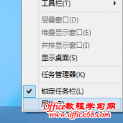 Windows系统中,任务栏(taskbar)就是指位于桌面最下方的小长条,主要由开始菜单、快速启动栏、应用程序区、语言选项带和托盘区组成,而Win7、Win8系统的任务栏则有显示桌面功能。Win8系统任务栏已经取消了开始菜单。 正常情况下任务栏位于桌面下方,有时候也可能无意间不知怎么地就跑上顶部,或者左侧及右侧。 在任务栏空...