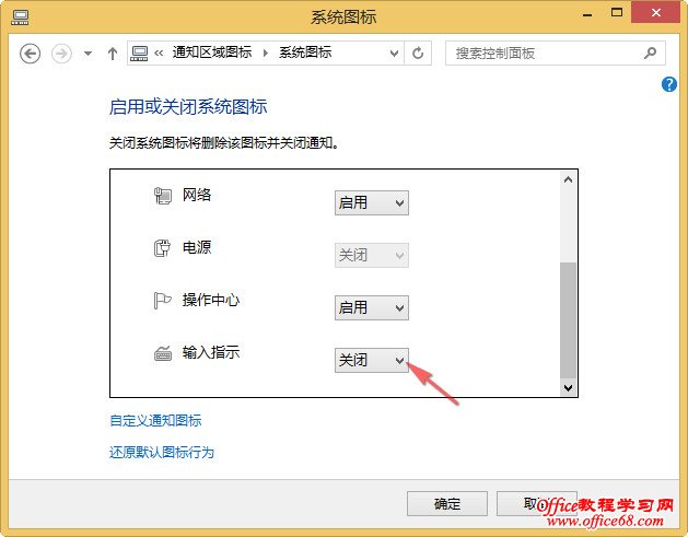 在当前打开窗口中,点击下面的“启动或关闭系统图标”,下面有个Input Indicator,设为off即可。