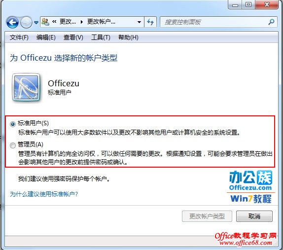 注意:如果被降级的账户是此计算机唯一一个管理员账户,则不能降低该账户权限。 |