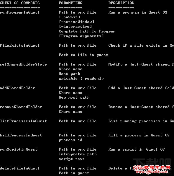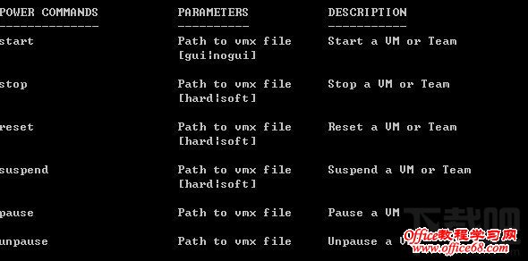 VMware提供的可编程接口,何谓Vmrun命令?其实这并不是什么神秘的东西,相信部分朋友使用过Vmware workstation来安装过一些虚拟机吧。如果你足够细心的话,你会发现在这个软件的安装目录下能找到一个Vmrun.exe可执行文件。如果你从命令行敲入vmrun.exe(当然你得切换到workstation的根目录下),你会惊奇的发现很多该命令提供了很多的参数,这些参数的功能成为了Host机器与Guest机器之间的功能强大的连接桥梁。那么,先一睹下到底有哪些VMware提供的可编程接口命令可供我们玩转。 1、POWER COMMANDS 如下图: