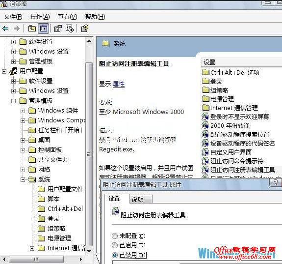 用户Win7系统中安装应用时,少数人会碰到系统注册表以被管理员禁用的提示,原因是系统自带的防护功能阻止注册表信息写入,所以在造成这个故障的,下面通过简单的修改即可恢复正常。 解决方法一:新建一个记事本复制以下代码粘贴到记事本中,在将记事本保存成vbs格式,双击运行即可。 dim a set a=createobject("wscript.shell") a.regdel "HKCU\Software\Microsoft\Windows\CurrentVersion\Policies\System\DisableRegistryTools" msgbox "ok!" 解决方法二:单击“开始→运行”,输入“Gpedit.msc”后回车,打开“组策略”。然后依次展开“用户配置→管理模板→系统”,双击右侧窗口中的“阻止访问注册表编辑工具”,在弹出的窗口中选择“已禁用”,“确定”后再退出“组策略”,即可为注册表解锁。