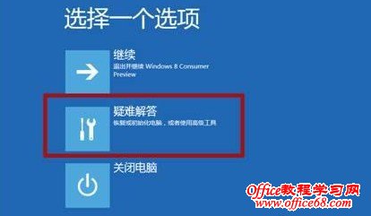 4、重启之后,发现“高级启动项”也是Metro界面,选择“疑难解答”。