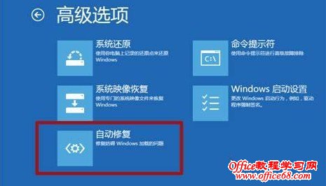 5、继续,选择“高级选项”。 ![]() 6、在这里可以看到有“自动修复”。