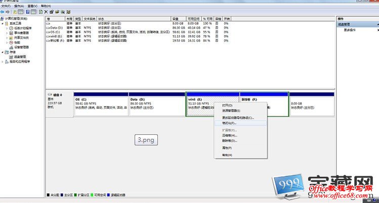 5、最后在磁盘管理工具中,找到装win8的分区格式化既可