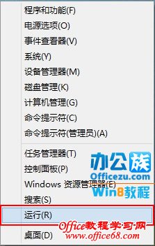 1 鼠标指向Windows8开始菜单位置,按右键展开菜单选择“运行”。
