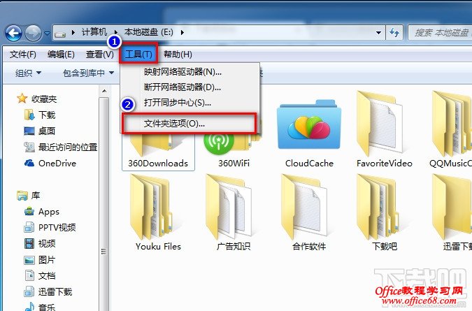 win7电脑显示隐藏文件1:打开我的电脑,找打上栏的“工具”--“文件夹选项”