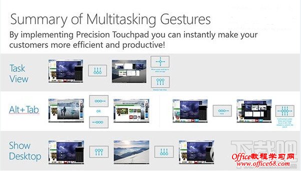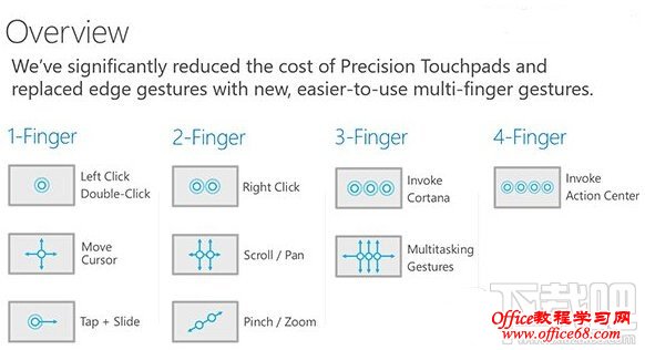 此外微软也在WinHEC会上现场演示了针对触屏与触控板新增的多种操控手势,具体如下: