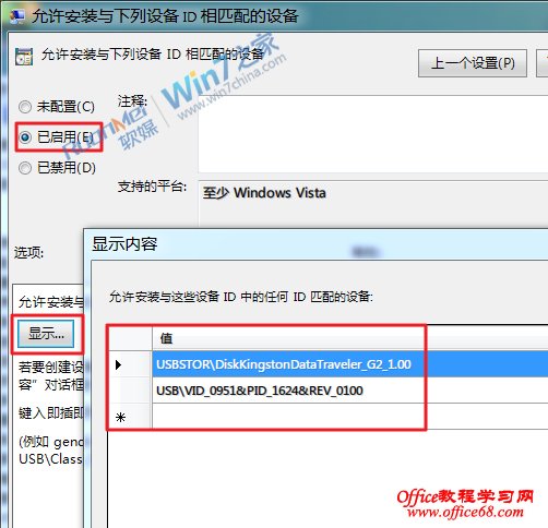 注意当需要添加新的可信任移动存储设备时,只需将第四步中的(1)设置为“未配置”或者“已禁用”,然后重新插入新设备,即可实现启动,再讲硬件ID添加至(2)中即可。最后说一句,设置有风险,操作需谨慎。 |