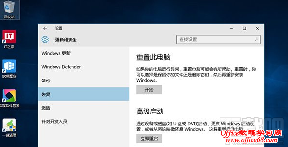 步骤:打开设置—更新和安全—恢复—点击高级启动中的“立即重启”