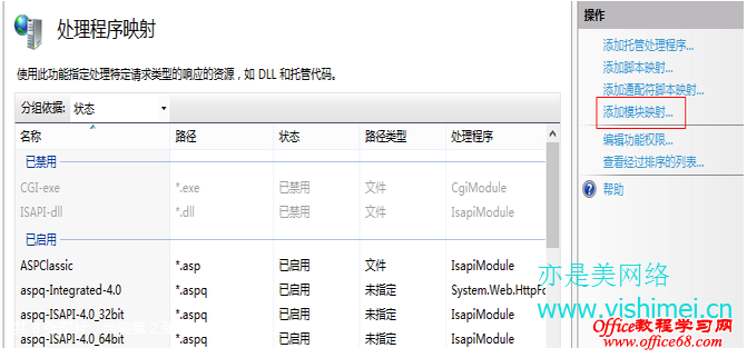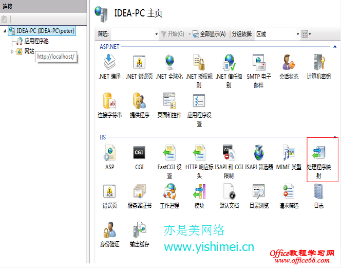 双击“处理程序映射”,