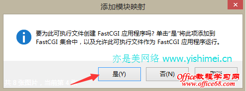 点击“是”就可以了。 这样配置后,IIS已经支持php扩展了,现在我们还要给网站添加默认文档“index.php”、“default.php”等。