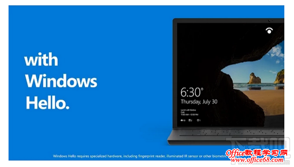Windows Hello解锁电脑 借助Windows Hello让个人计算更加安全和个性化。如果你的电脑拥有英特尔实感3D 摄像头,当你更新到Windows 10之后,你将能够体验到Windows Hello带来的好处。你可以到这里查看有哪些已发布的Windows 10设备支持Windows Hello。并且在接下来的几个月内,市场上还将有更多设备享受到Windows Hello带来的便捷体验。 “Windows Hello”需要专用硬件支持,包括指纹识别器,红外线照明传感器或者其他生物识别传感器。 |