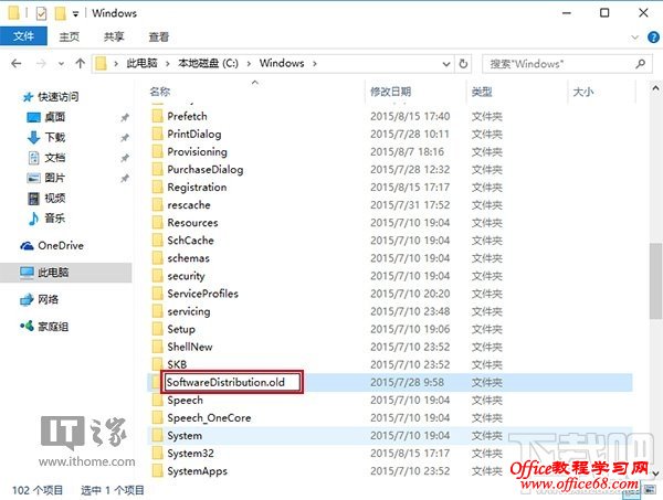3、然后进入C:windows,找到SoftwareDistribution文件夹,并将其重命名为SoftwareDistribution.old(只要名称变了就行,不必非要是这个)