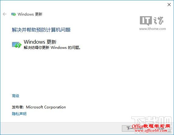 2、点击下方“使用Windows更新解决问题”