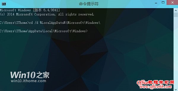 2、在开始菜单上,点击鼠标右键,选择“命令提示符”。然后键入如下内容“cd /d %LocalAppData%MicrosoftWindows”(同样不含两端的引号),并按下“回车键”;