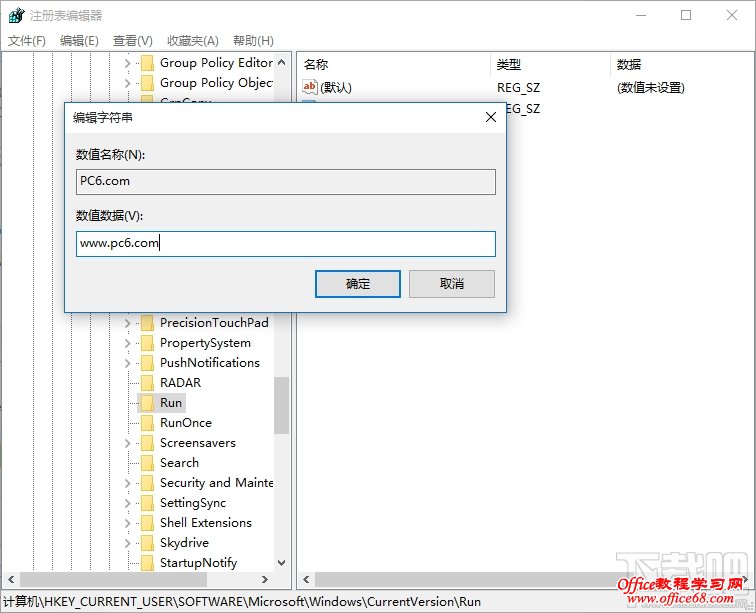 如果要添加一个启动项,你需要在空白处单击右键创建一个字符串值(String Value)并且输入你希望的名称,然后双击这个新建的值,在数值数据里输入你要启动的程序的完整路径,点击确定即可完成。