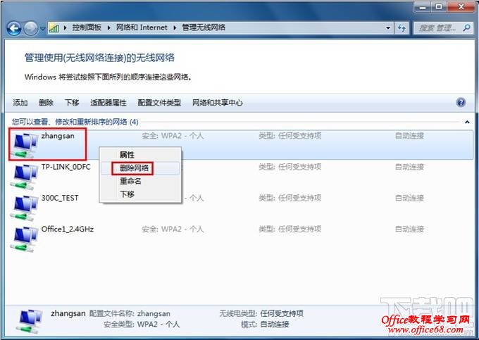 使用Windows 7系统的电脑连接无线网络时,如果出现可以搜索到无线信号,但是连接不上提示“Windows无法连接到无线网络”的问题,可以按以下步骤进行排查。 一、删除配置文件如果无线设备一直显示正在连接中或正在获取IP地址,但是始终无法连接成功。可尝试删除电脑上保存的无线配置文件;同时确保路由器的DHCP功能是开启的。 删除方法:点击电脑右下角无线信号的图标,点击【打开网络和共享中心】,找到并点击【 管理无线网络】,在显示的网络列表中,找到路由器的信号,右键选择并点击【 删除网络】。