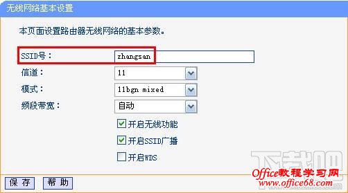 二、确认无线名称连接错误的信号会导致连接不成功,请确认无线信号名(SSID号)。 确认方法:通过有线电脑连接并登录到路由器管理界面,点击 无线设置>>基本设置中查看SSID。如下图所示: