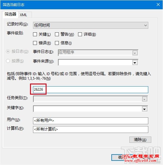 3、在窗口正中间一行输入事件ID“26226”,点击“确定”,如下图
