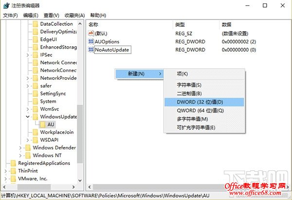 Win10默认自动下载和安装更新,并且自动重启。但在重启问题上,其实我们是可以设置的。就在Windows更新界面的设置中,可以选择“通知以安排重新启动”,用户可以在安装更新后选择重启时间。但是如果每次系统更新后都重启,会给我们的工作带来不必要的麻烦。有办法防止出现这种局面,只要在注册表中建一个值就可以解决。一起跟小编看看吧! 需要提醒各位的是,修改过程中的误操作可能会给系统带来风险,因此提前用软媒魔方(点击下载)的清理大师对注册表进行备份,可以做到有备无患,出问题后可轻松恢复到之前状态。 具体步骤如下: 1、在运行或Cortana搜索栏中输入regedit后回车,打开注册表编辑器 2、定位到:HKEY_LOCAL_MACHINESOFTWAREPoliciesMicrosoftWindowsWindowsUpdateAU