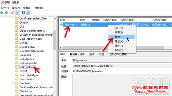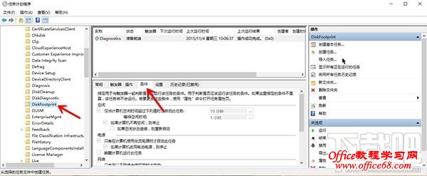 2.在计划任务程序中左侧导航栏内依次进入>Microsoft> Windows> Diskfootprint,在右侧就会看到名为Diagnostics的任务了。