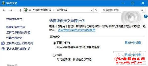 1、控制面板——电源选项,单击当前所选的电源计划旁边的更改计划设置。