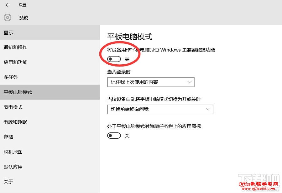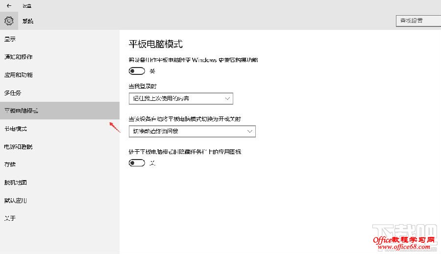 图(4) 3.然后找到“平板电脑模式”,你就可以看到(如图5)所示,只要关闭了这个模式就能解决这个问题了!
