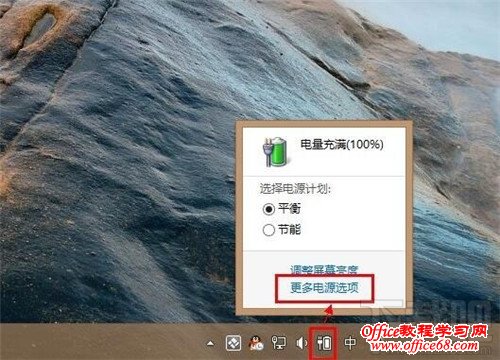 1、在桌面右下角点击电量图标,在弹出的快捷面板中选择“更多电源选项”,如图所示。在“电源选项”界面中点击左侧的“选择电源按钮的功能”选项;