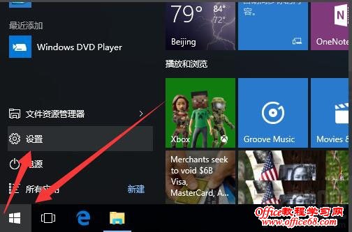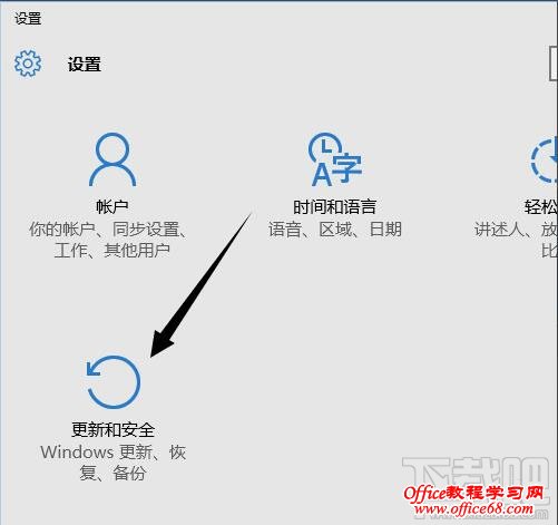 2、从开始菜单打开【设置】,可能由于显示窗口的大小的关系,你需要滚动往下才能找到系统恢复功能;