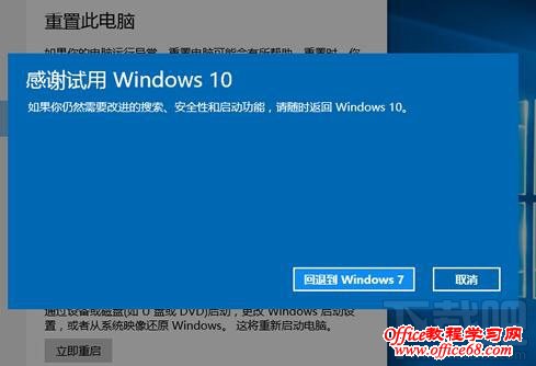 6、如果你的心愿已决,任性得只能适应WIN7系统的话,那么请你再次点击【回退到Windows7系统】执行系统回滚恢复;
