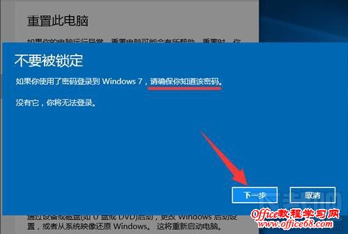 5、这一个提醒确实有很大的帮助哦,因为回退到WIN7系统后只能使用本地用户登录系统,所以你最好先回忆一下以前的用户密码,或者现在新一个本地用户;