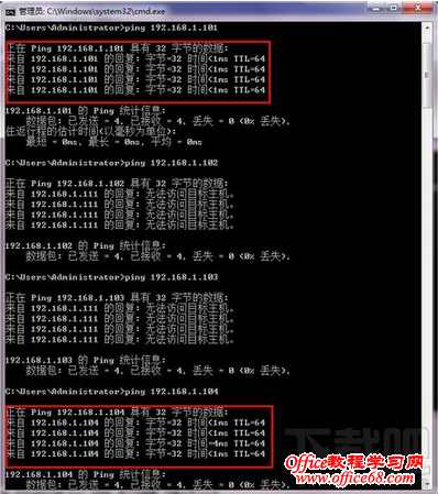 Dos时代下的命令在Windows时代早以不被重视,Dos时代下的复杂命令在Windows时代中动动鼠标就能完成。到了Win7时代,90后甚至听都没有听说过,但Win7时代也不敢把Dos命令给彻底放弃,下面介绍一下我用for命令批处理远程强制关闭公司局域网内下班后忘记关机的电脑。 1、先看一下网内还都有谁没有关机,在运行里输入cmd打开命令行,我们公司的IP地址从192.168.1.101到192.168.1.112,因此在命令下输入for %i in (101,102,103,104,105,106,107,108,109,110,111,112) do ping 192.168.1.%i后回车