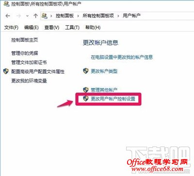 2、在打开的用户帐户窗口,点击:更改用户帐户控制设置;