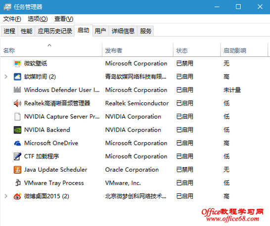 4、在任务管理器中点击“启动”选项卡,把所有第三方启动项全部禁用,如下图——