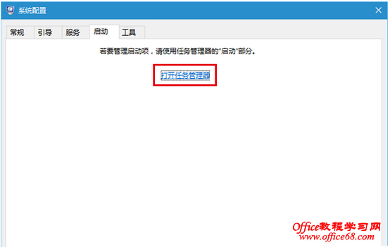 3、点击“启动”选项卡,选择“打开任务管理器”,如下图——