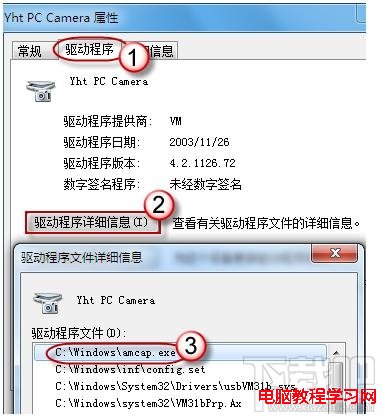 3、在“驱动程序”选项卡上,单击“驱动程序详细信息”,可以看到.exe 文件的详细路径(通常位于系统盘 Windows 文件夹下)。
