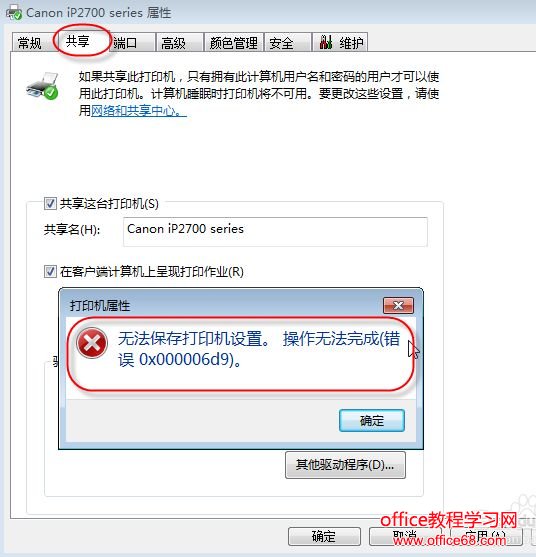 刚刚安装完了 Windows 7 后,想将装好驱动的打印机共享出去,以便局域网里面的其他电脑能够共享打印机。可是在“打印机属性”里面勾选共享打印机的项目后,点击确定或者应用,都报错,提示“无法保存打印机设置。操作无法完成(错误 0x000006d9)”。 这就奇怪了,之前一直都好好的,怎么这次安装好系统后,竟然报这个错误呢?难道是刚下载的某精简版系统有问题?于是就赶紧 Google 一把,看了下解决的方法,才发现原来是 Windows 防火墙的问题。