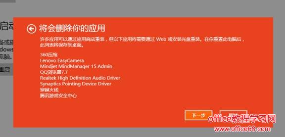 保留个人文件重置后桌面会生成一个文件,记录本次重置所删除掉软件名称。注:删除所有内容选项重置后桌面也会生成文件,此文件用处不大可以删除。恢复过程相同。