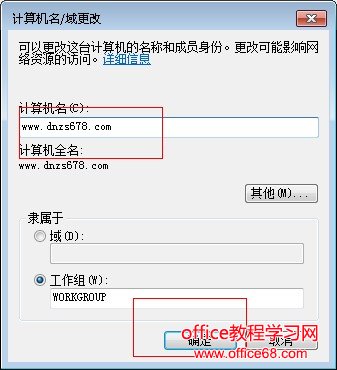 4、更改计算机名 弹出”计算机名/或更改“对话框,在”计算机名“文本中输入新的名称,单击”确定“按钮,如下图所示。