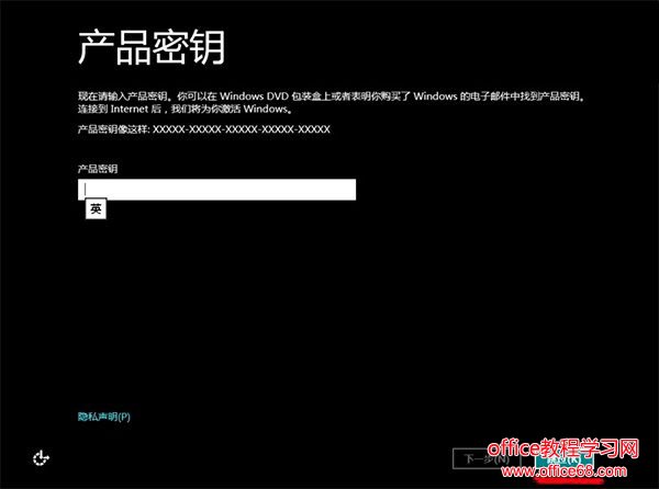 5、最后,在系统安装过程中,我们可以直接跳过安装密钥输入环节 有了上述的方法,大家就可以跳过安装密钥而使用上Win8系统了。不过即便不用输入安装密钥,进入到系统后,用户依然有可能需要面对激活系统的问题,毕竟Win8可不是免费的。 |