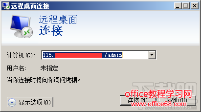 2、输入完成后点击确定回车,回车后,看到熟悉的远程桌面连接窗口,如图2-3所示。再输入远程所需要的用户名和密码,点击连接,重新登陆,即可默认强制登陆到服务器的0用户下。