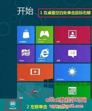 1、右键单击桌面空白处,桌面下方弹出“所有应用”选项,左键单击“所有应用”。