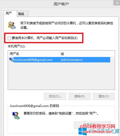 步骤三:将要使用本计算机,用户必须输入用户名和密码一项去掉勾选。