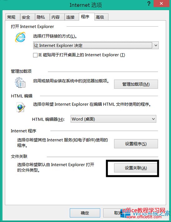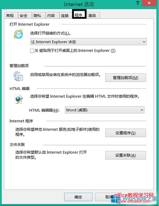 有许多Win8的用户想要浏览网页的时候,会发现自己的ie浏览器无法打开.mht格式的文件,遇到这种状况却不知道要怎么处理,下面小编就教大家如何打开.mht文件。 方法: 1.打开IE浏览器,进入Internet选项,切到“程序”选项卡。
