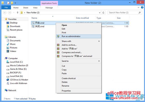 在Win8系统中有一个驱动前面程序,所有要安装的驱动都会被检查数字签名。如果没有未签名驱动是不被允许安装的。那么有没有什么方法可以安装未签名驱动呢?本文就来介绍一下Win8系统驱动未签名怎么安装。 方法一(操作后只单次有效): 1、如果是Win8(主)双系统,启动到选系统的时候,选最下面的:更改默认值或选择其它选项-》选择其它选项-》疑难解答-》高级选项-》Windows启动设置—重新启动,然后选择“禁用驱动程序强制签名”; 2、如果你不是Win8(主)的双系统,或是Win8单系统,进系统后,Win键+C键-》调出Charm菜单-》更改电脑设置-》设置-》常规-》高级启动的立即重启-》疑难解答-》高级选项-》启动设置-》重新启动,然后禁用驱动强制签名。 此办法每次都需要重复步骤。 方法二(避免测试许多修改驱动声卡之类时的麻烦): 1.下载附录的文件 2.解压出来两个cmd命令 3.右击“开启.cmd”以管理员运行,如图: