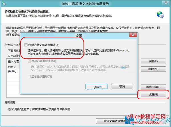 以上就是Win8禁用自带输入法“文字转换错误”报告的方法的介绍了,关闭自动记录文字转换错误就可以禁用这个错误报告了。