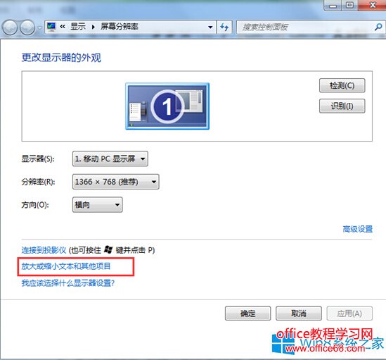 2、在接下来的窗口下,我们点击下方的“放大或缩小文本和其他项目”按钮;