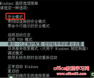 在这个安全模式的菜单中,有若干个选项,第一项即进入安全模式,然后下面的几个选项也可以进入,不过其加载的系统文件要比单纯的安全模式要多一些。